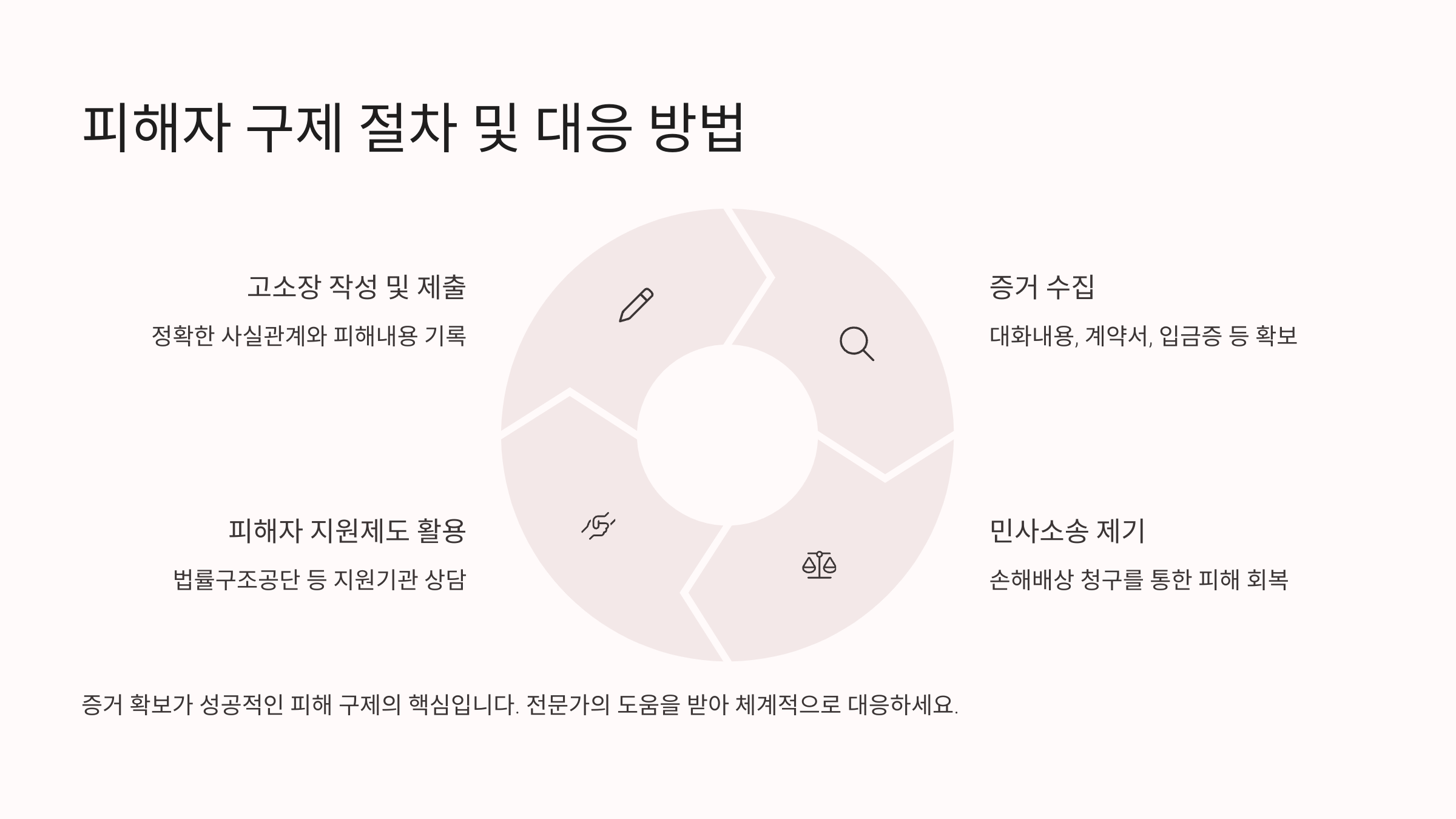 하지만 형사 고소만으로는 돈을 돌려받기 어려운 경우가 많아요. 그래서 동시에 민사소송을 제기해 '손해배상청구'를 진행하는 게 일반적이에요. 형사 + 민사 동시진행이 피해 회복에 훨씬 효과적이에요.