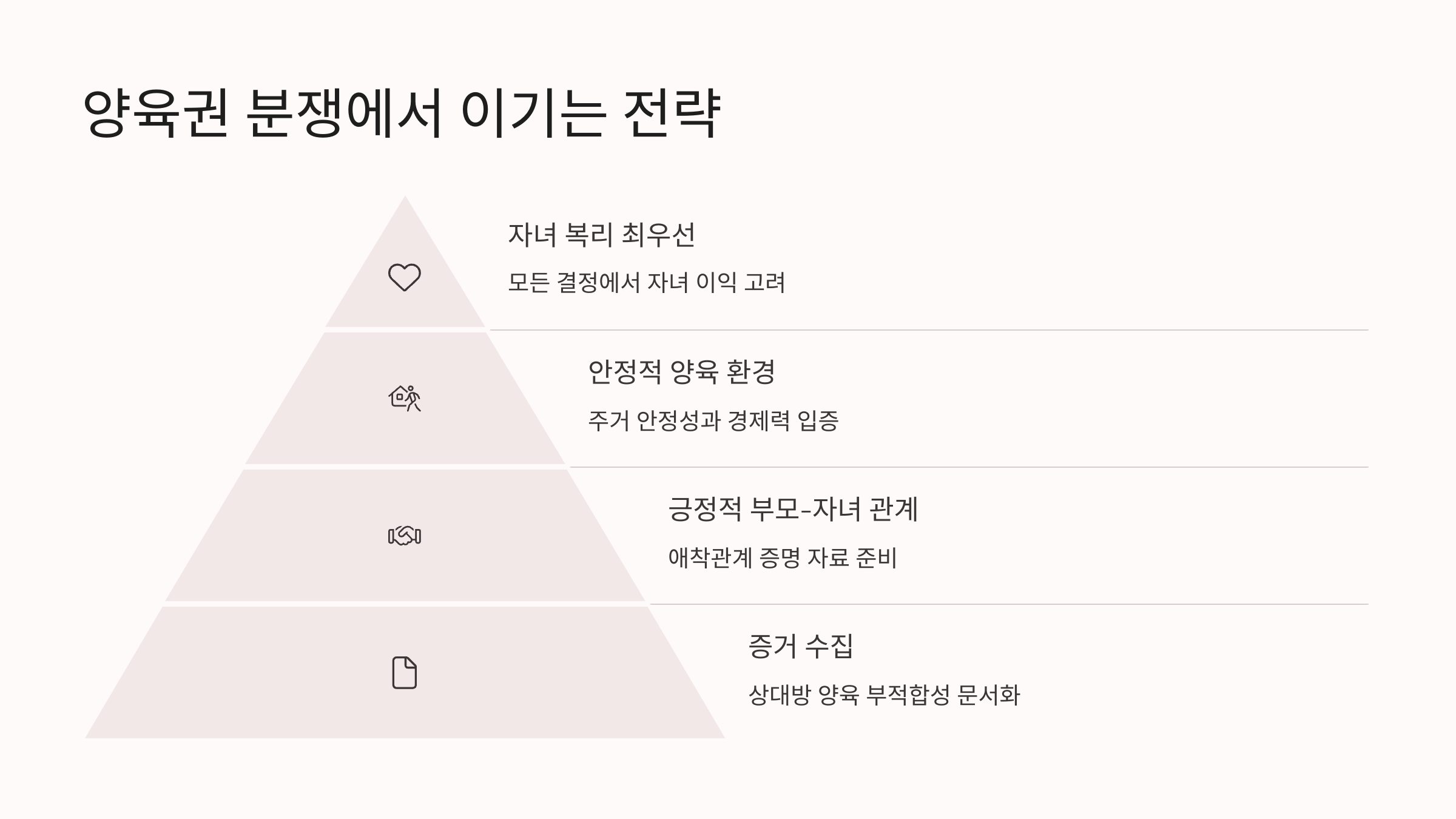 양육권 분쟁에서 이기기 위해선 단순히 감정 호소에 의존하면 안 돼요. 법원은 감정보다는 객관적인 자료와 환경을 더 중요하게 보기 때문에, 전략적으로 접근해야 해요. 가장 먼저 해야 할 일은 '아이 중심의 자료 준비'예요.