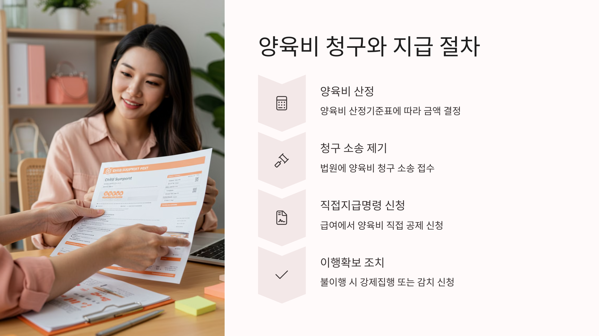 양육비 청구는 가정법원에 ‘양육비 청구 소송’을 제기하거나, 협의로 합의서를 작성해 공증받는 방식이 있어요. 협의가 안 될 경우 판결문을 바탕으로 강제집행까지도 가능해요.