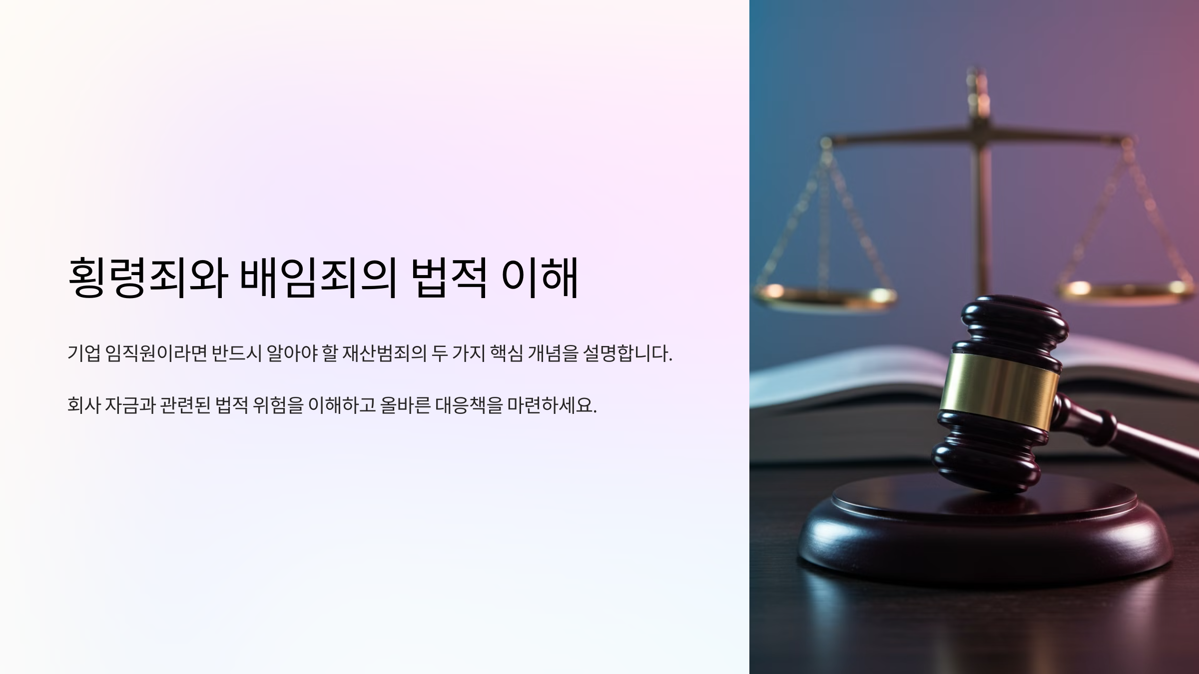 회사 자금을 사용하는 임직원이라면, '횡령'이냐 '배임'이냐의 구분이 정말 중요해요. 두 범죄는 유사해 보이지만 법적 기준과 처벌 수위가 완전히 다르기 때문이죠. 특히 대표이사나 재무담당자 등 실무를 맡고 있다면 꼭 알고 있어야 할 차이점이에요.
