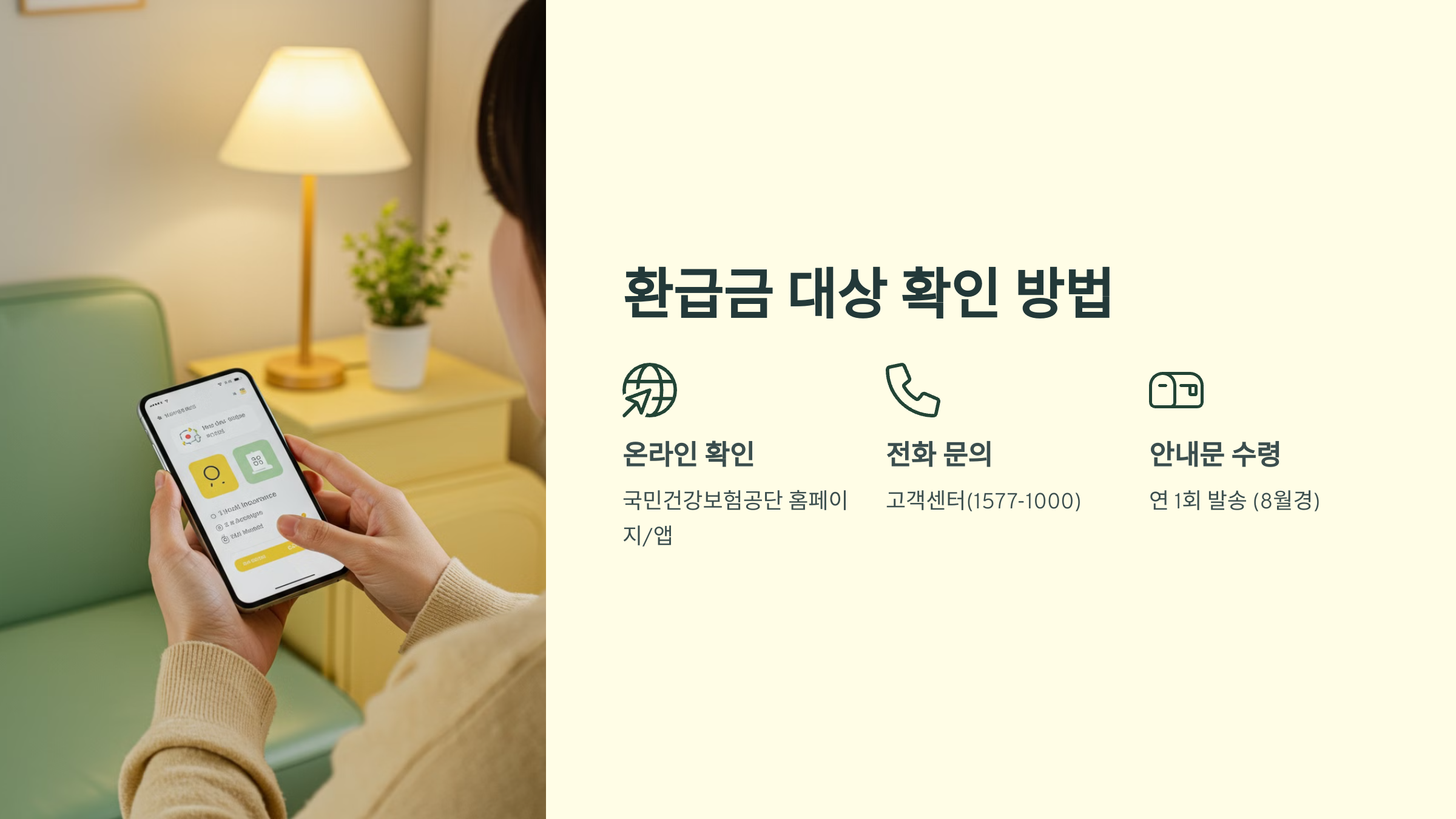 - 📞 스팸 문자, 전화 주의: 건강보험공단에서는 문자나 전화로 직접 환급금을 요청하지 않아요.