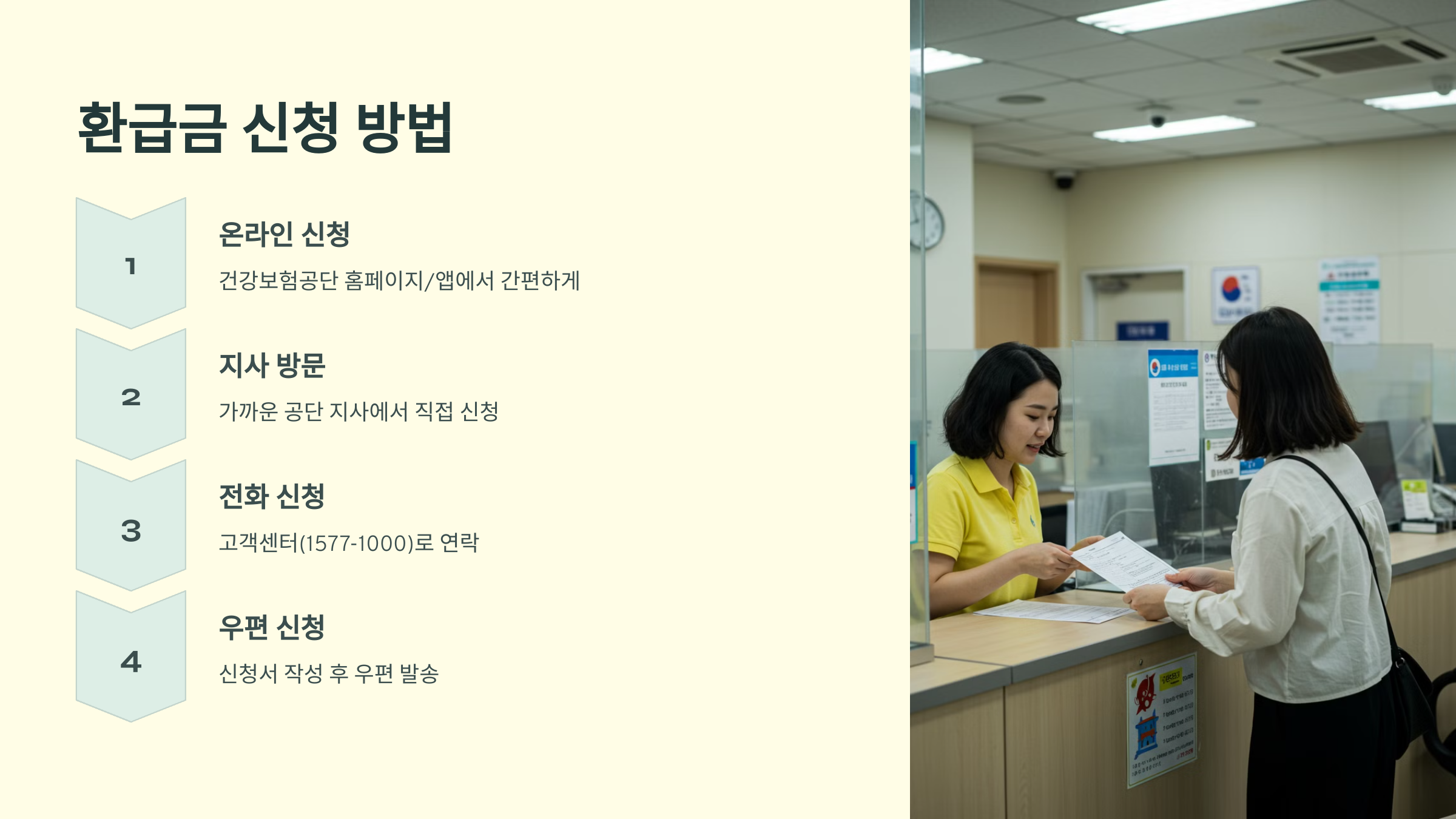 | 📞 전화 신청 | 1577-1000으로 전화 후 본인 인증 → 환급금 신청 | 5~10분 |