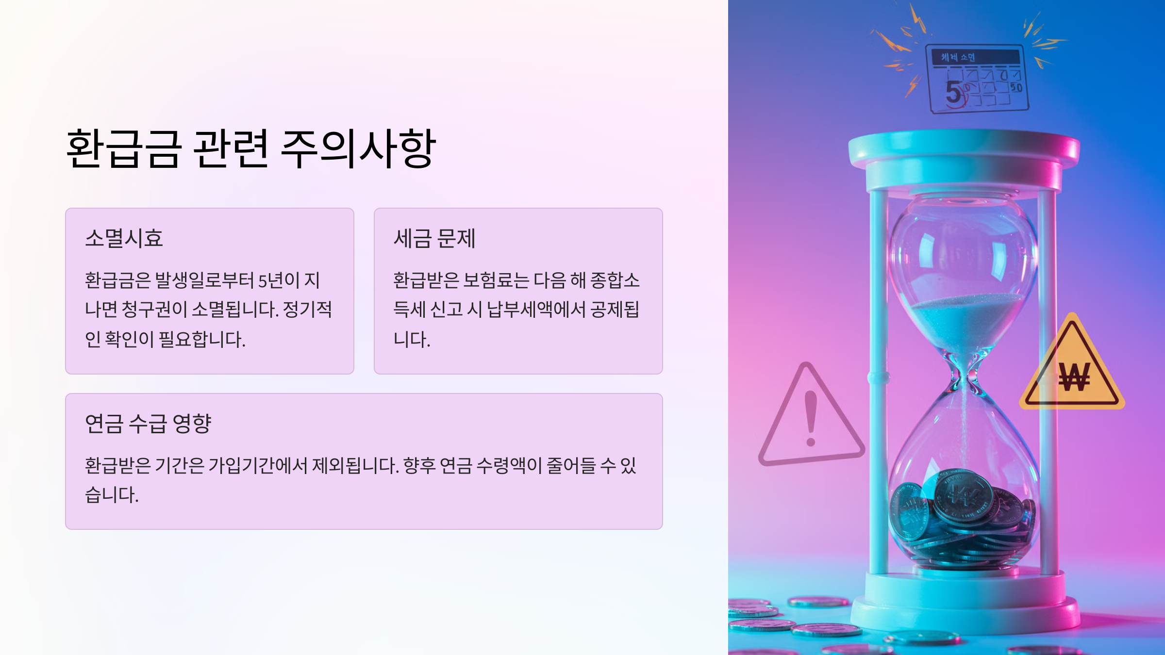 국민연금 환급금을 신청하기 전에 꼭 알아둬야 할 몇 가지 중요한 사항이 있어요. 특히 환급금은 소멸시효가 있기 때문에 늦지 않게 신청해야 해요!