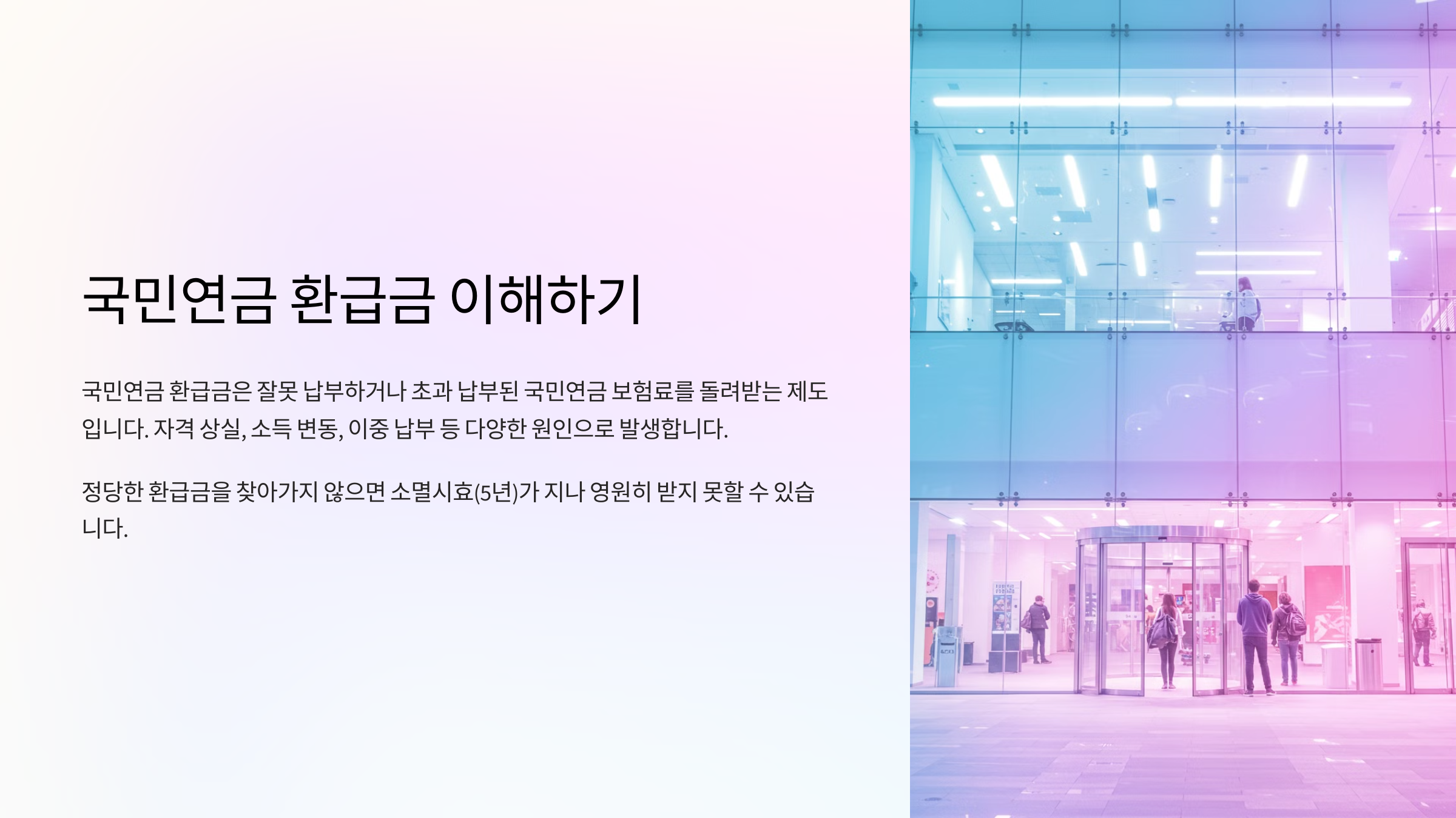 이 글에서는 국민연금 환급금의 개념부터 조회 방법, 신청 절차까지 하나하나 자세히 설명할게요. 몇 분만 투자하면 혹시 받을 수 있는 돈이 있는지 바로 확인할 수 있어요! 😃