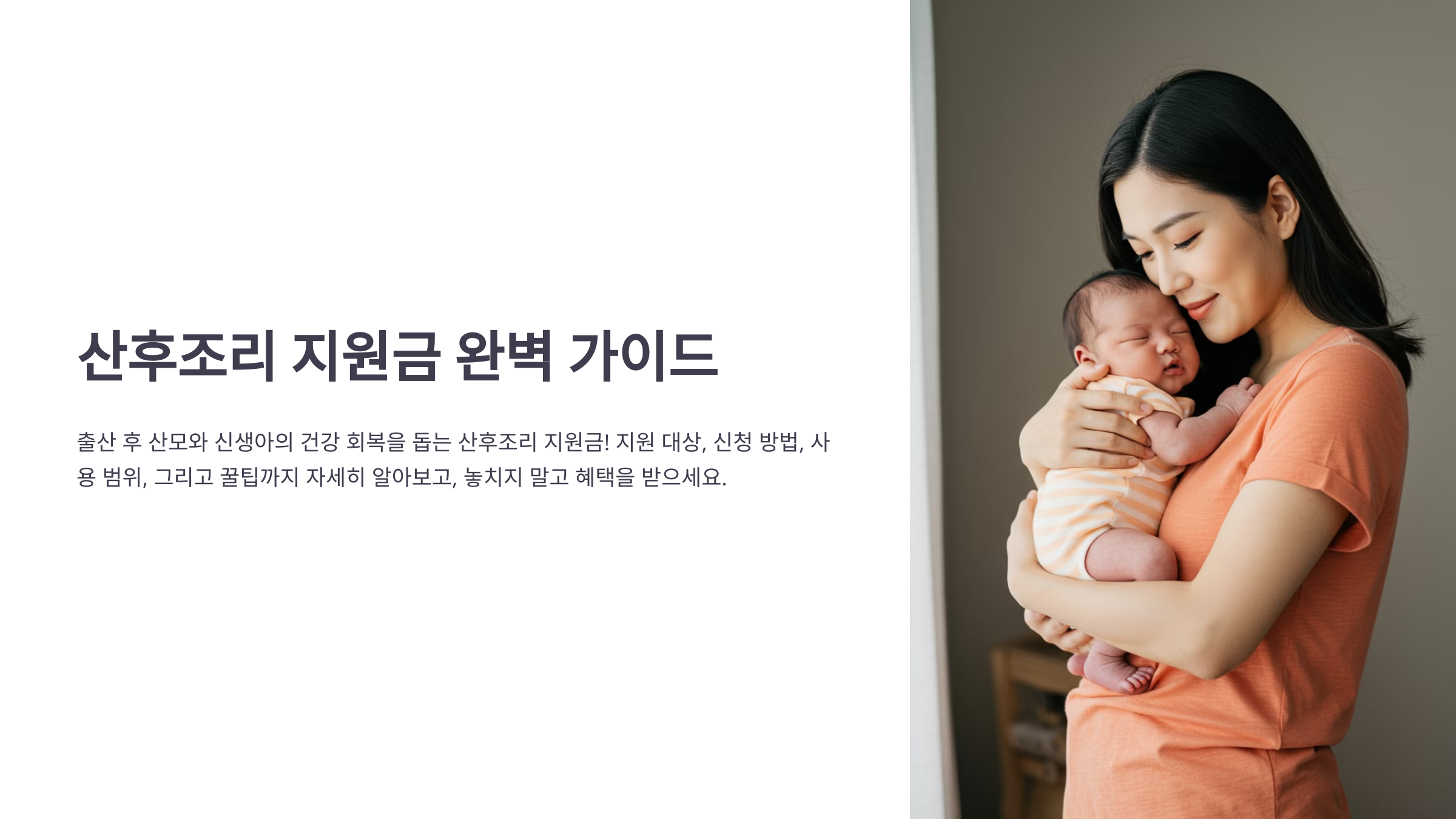 출산 후 몸을 회복하고 신생아를 돌보는 것은 굉장히 중요한 일이에요. 하지만 산후조리 비용이 만만치 않다 보니 많은 분들이 부담을 느끼기도 하죠. 이를 돕기 위해 정부와 지자체에서는 다양한 산후조리 지원금을 제공하고 있어요.