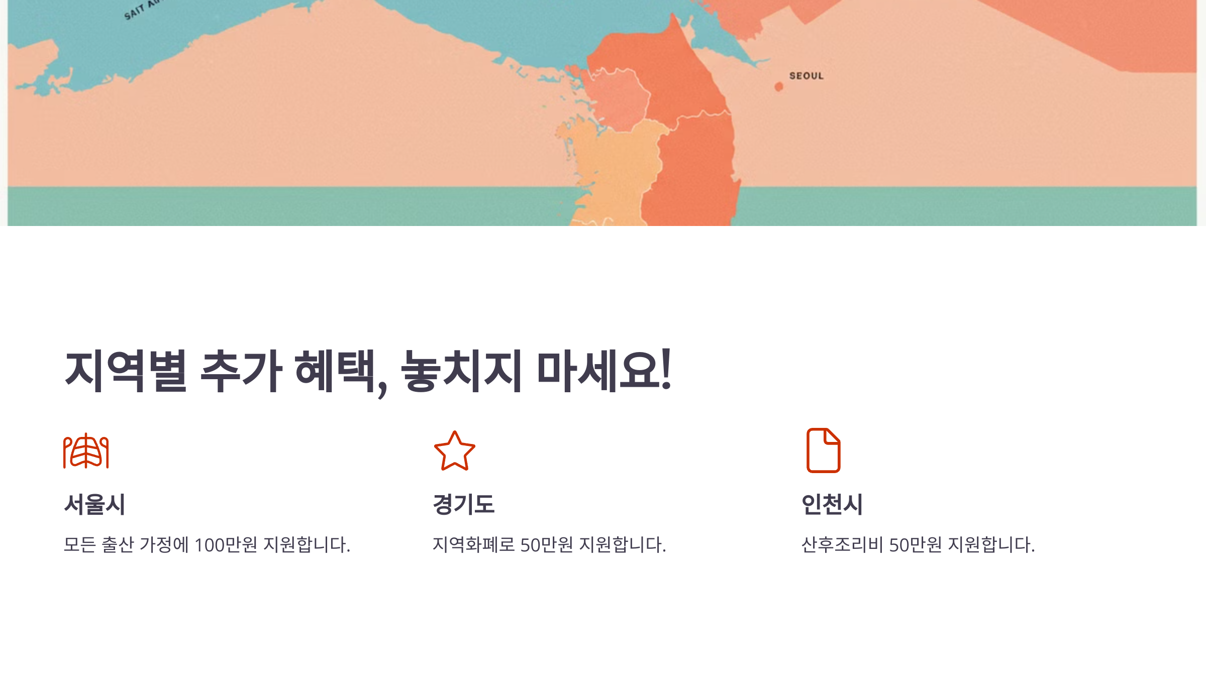 | 출산지원금 | 30만~100만원 | 산후조리, 육아 용품 | 일부 지역은 현금 지급 |