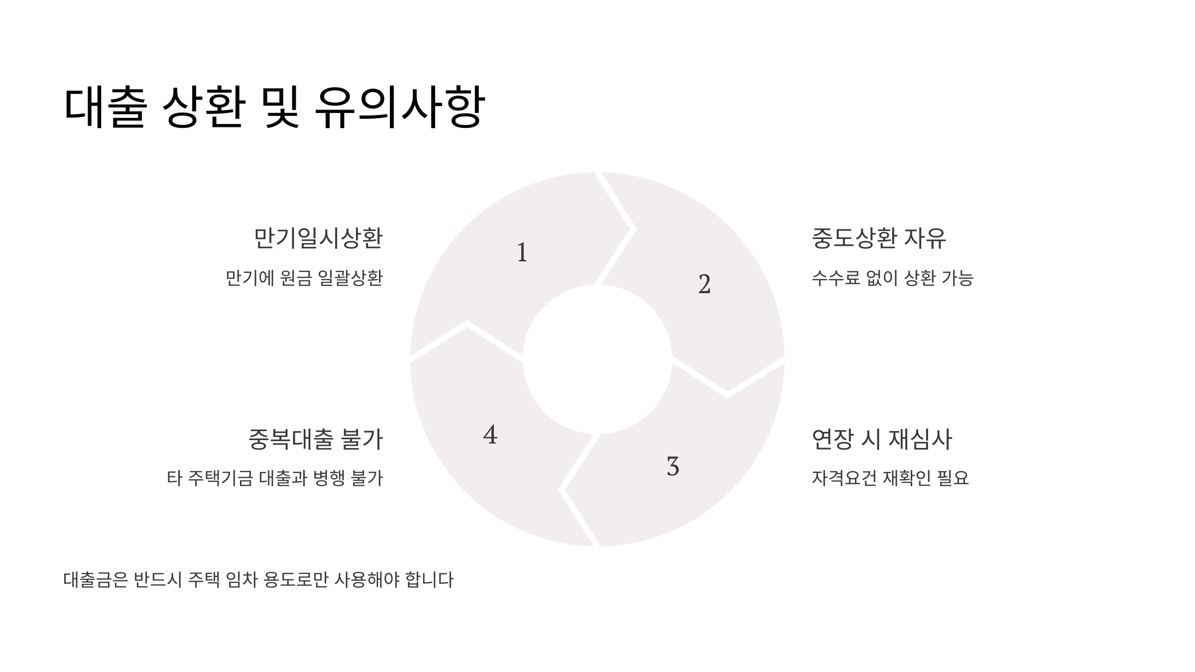 ✔ 대출 연장: 2년 단위 연장 (최대 4회, 최장 10년)