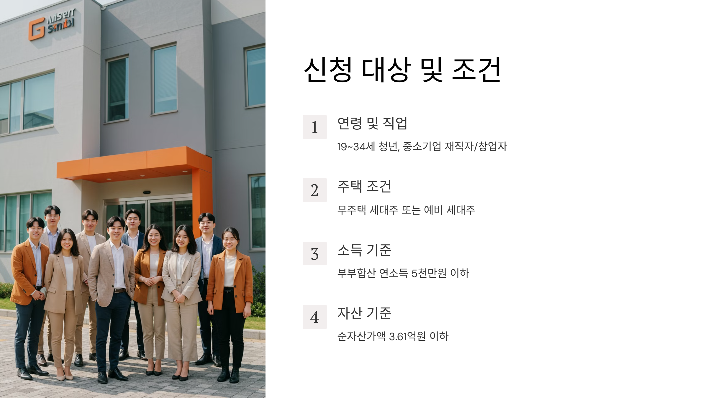 이처럼 대출 한도와 금리가 다른 상품에 비해 유리한 만큼, 많은 청년들이 이 대출을 활용해 주거 안정을 찾고 있어요. 그럼 이제 신청 조건과 대상에 대해 자세히 알아볼까요? 😊