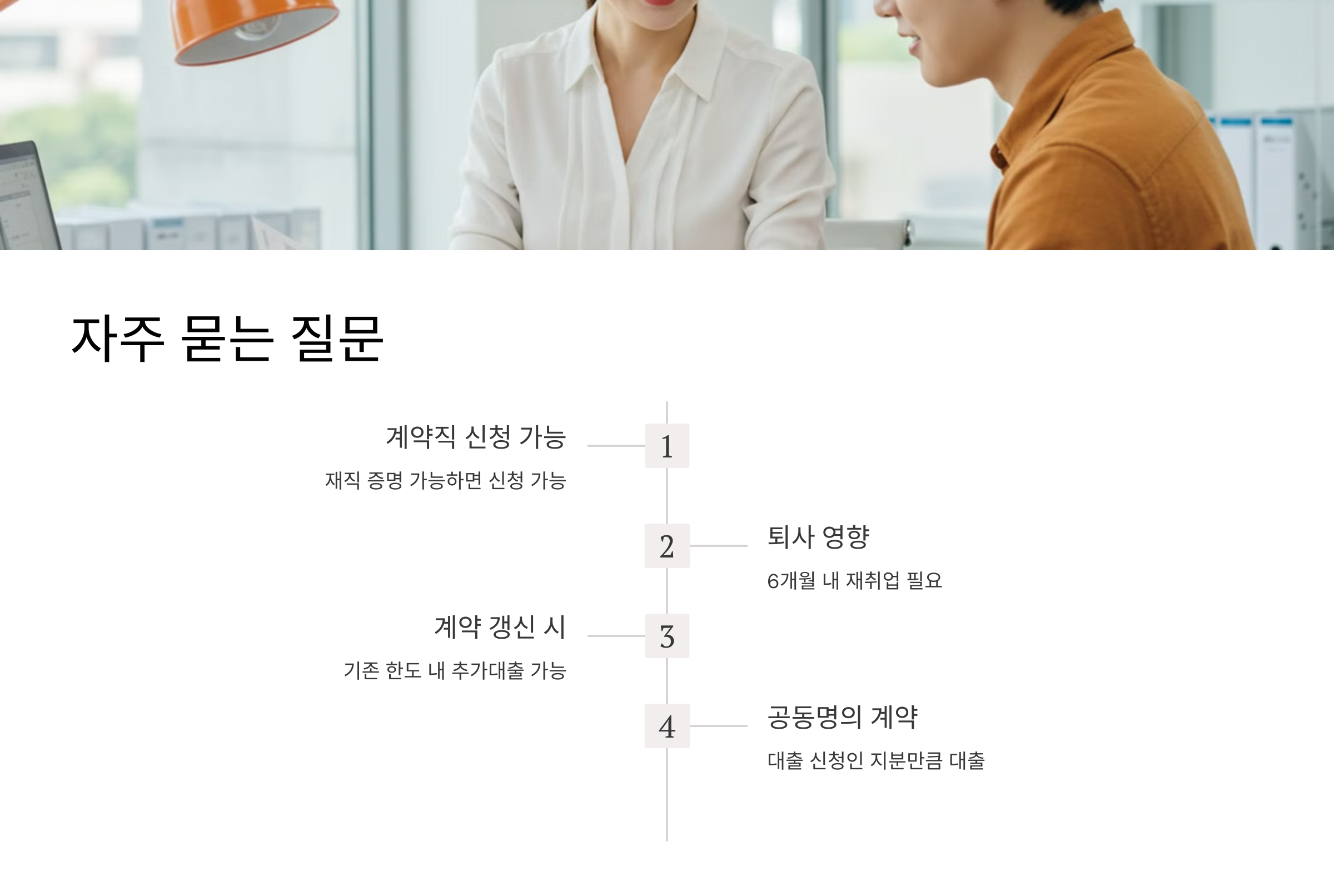 - 퇴사하거나 대기업으로 이직하면 대출 연장이 어려울 수 있어요.