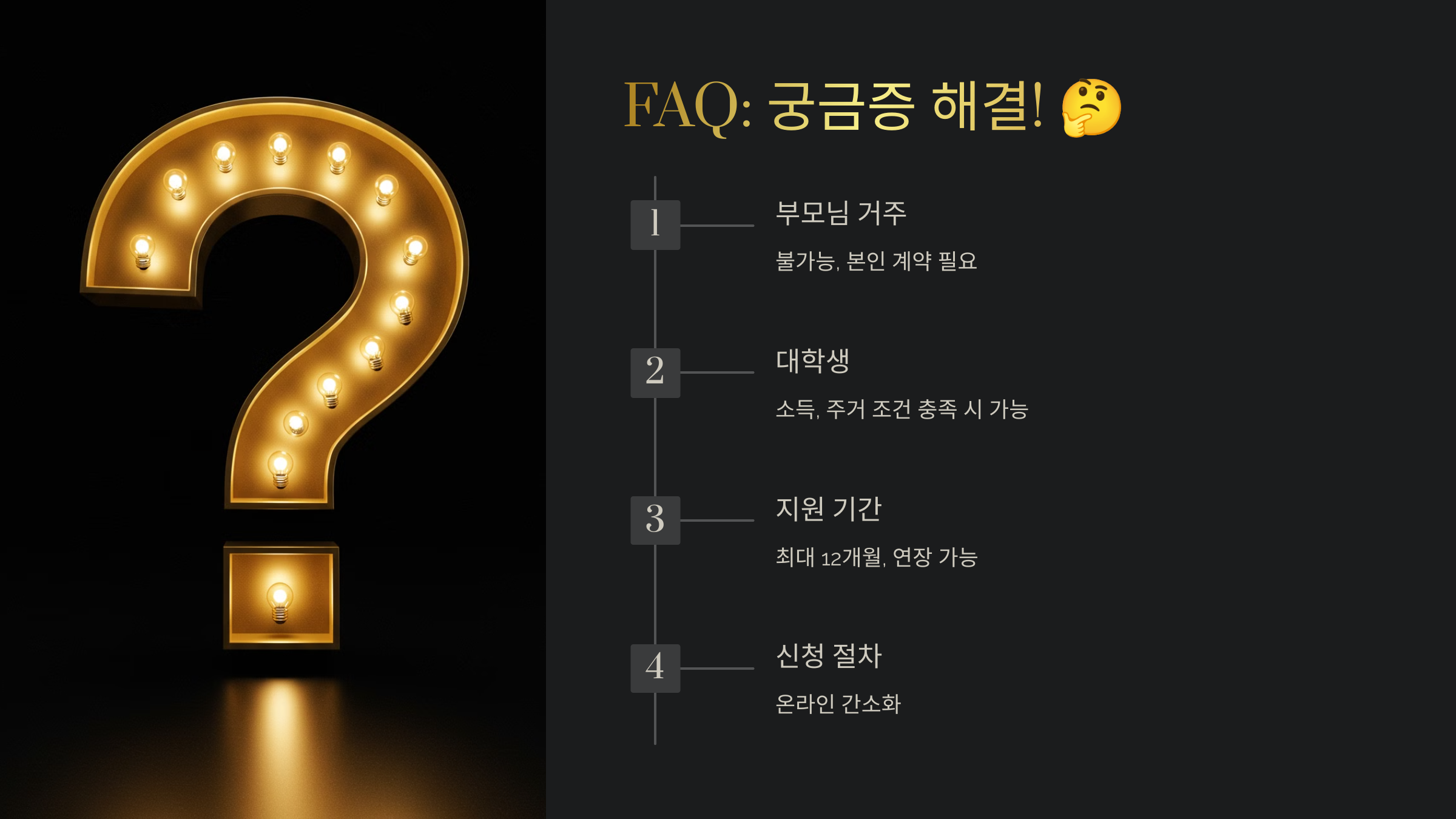 A2. 네! 대학생도 신청할 수 있지만, 소득 기준을 충족해야 해요. 또한 부모와 별도로 거주하고 있어야 해요.