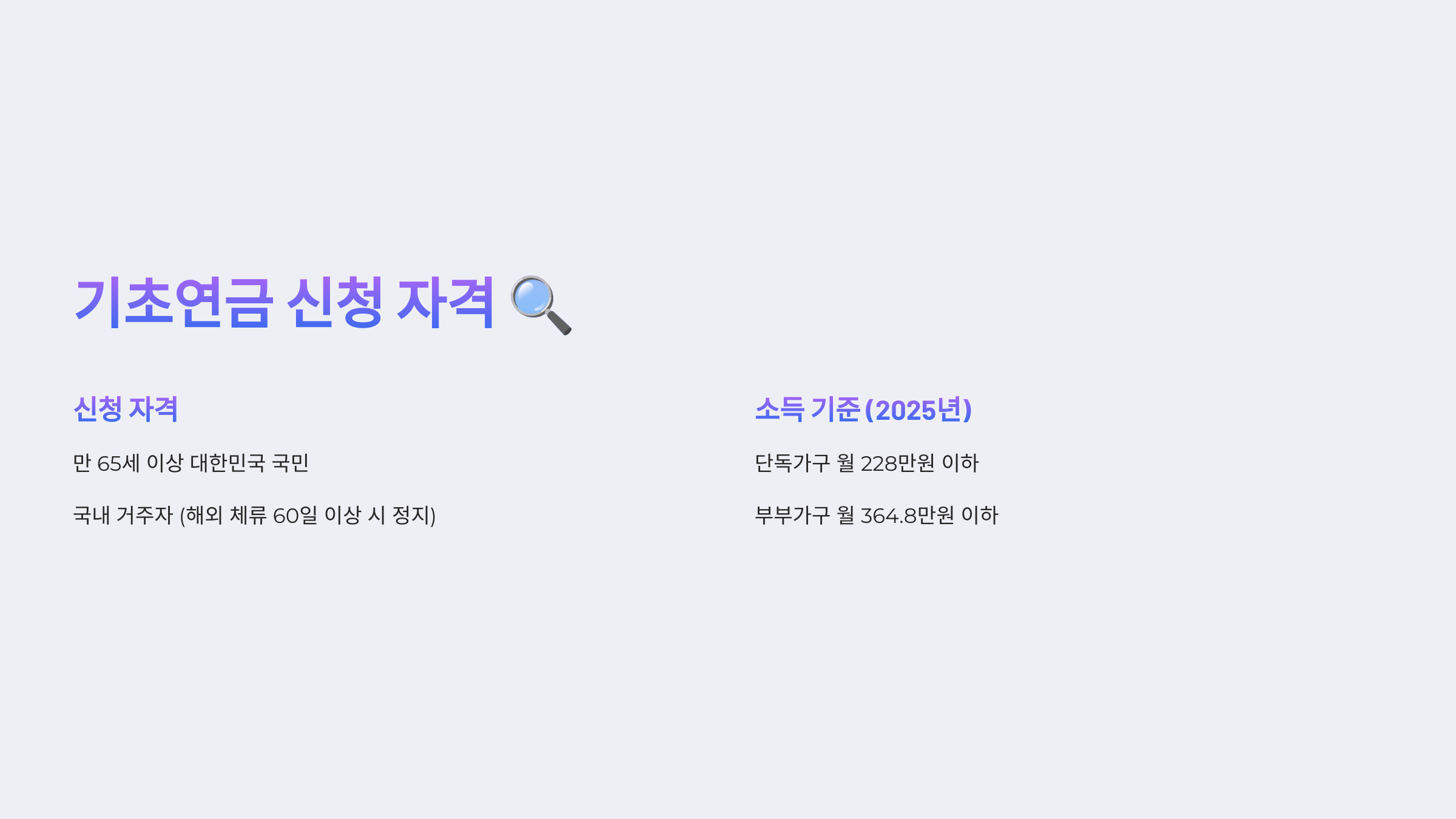 2025년에는 기초연금 지원금이 인상될 예정이라 관심이 더 높아지고 있어요! 그럼 지금부터 기초연금의 조건, 신청 방법, 혜택까지 꼼꼼하게 살펴볼게요. 🔍