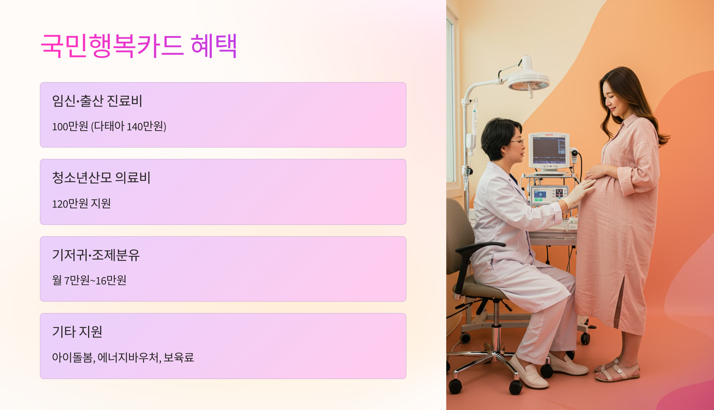 | 임산부 | 임신 확인서 제출 필요 | 출산 전후 의료비 지원 (최대 120만 원) |