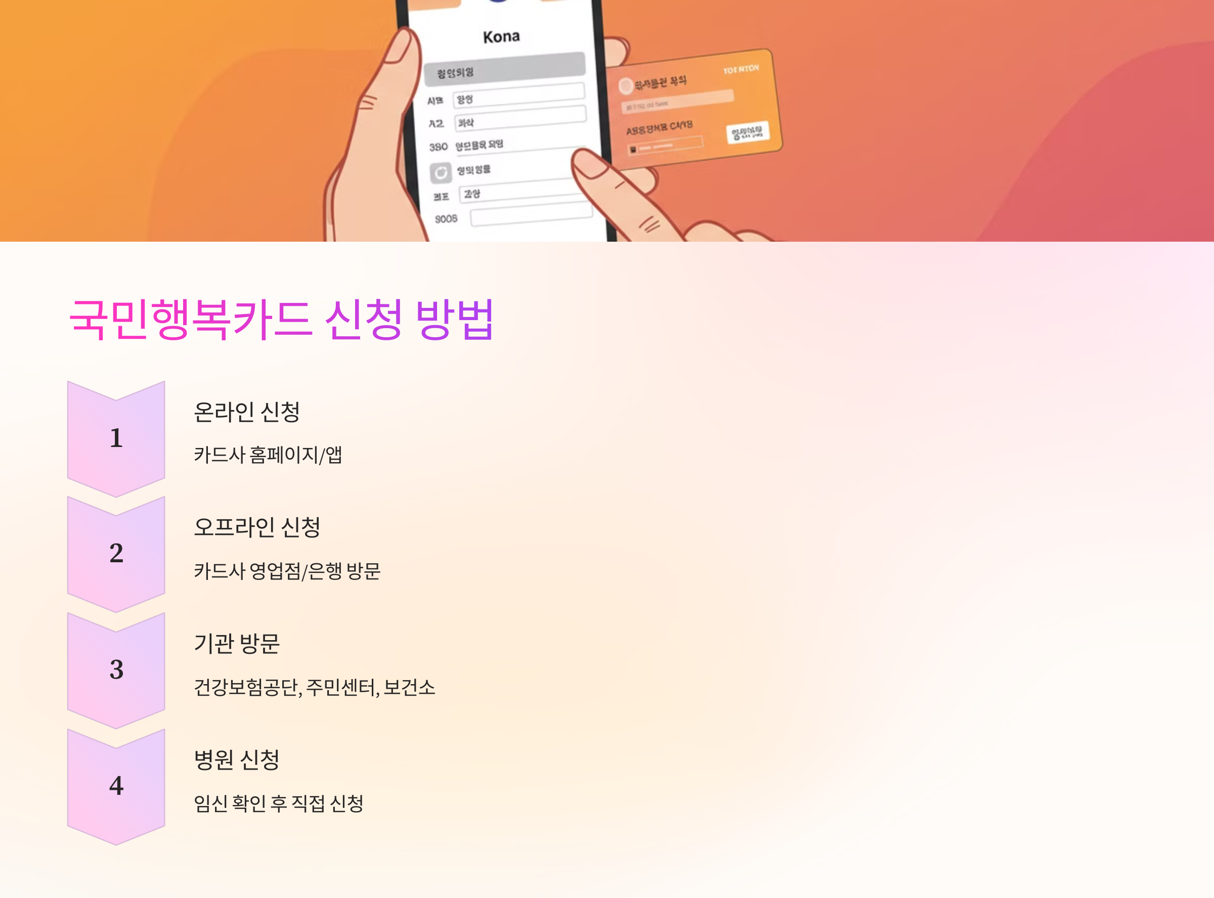 그럼, 국민행복카드를 신청하는 방법을 하나씩 알려드릴게요! 🔍