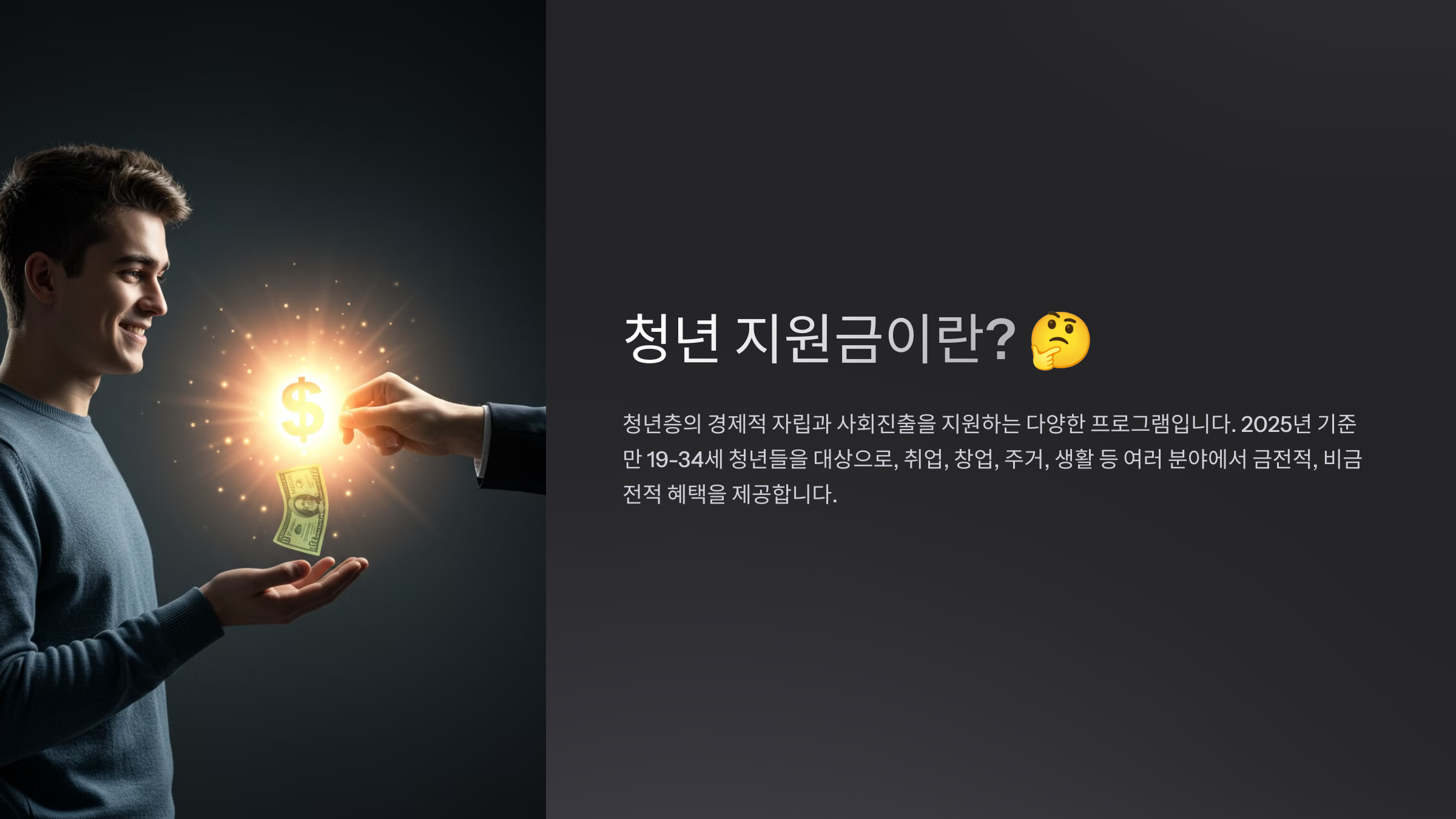 청년 지원금은 정부와 지방자치단체에서 청년층의 경제적 부담을 덜어주기 위해 제공하는 다양한 혜택을 의미해요. 취업 지원, 주거비 보조, 창업 자금, 생활 안정 지원 등 여러 형태로 제공되며, 2025년에도 다양한 정책이 시행될 예정이에요. 📆
