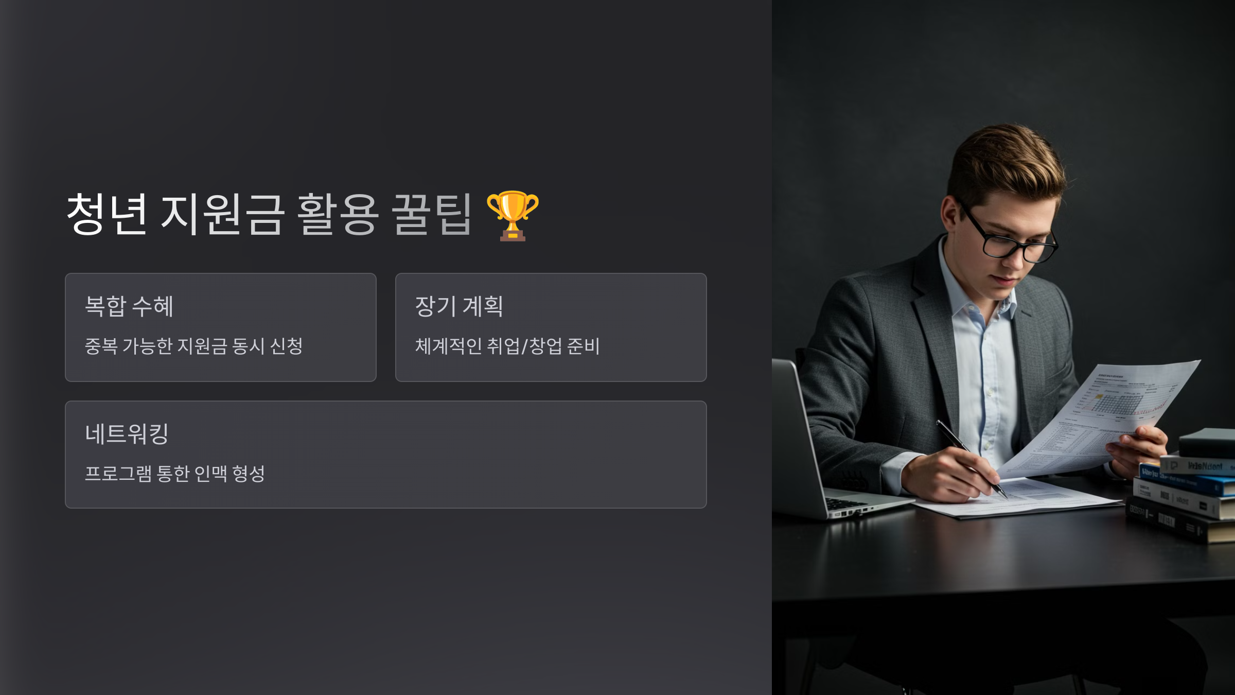 청년 지원금은 잘만 활용하면 큰 도움이 될 수 있어요. 하지만 신청 방법을 잘 몰라서 놓치는 경우가 많아요. 😭 그래서 실질적으로 혜택을 극대화할 수 있는 꿀팁을 정리해 봤어요! 📌